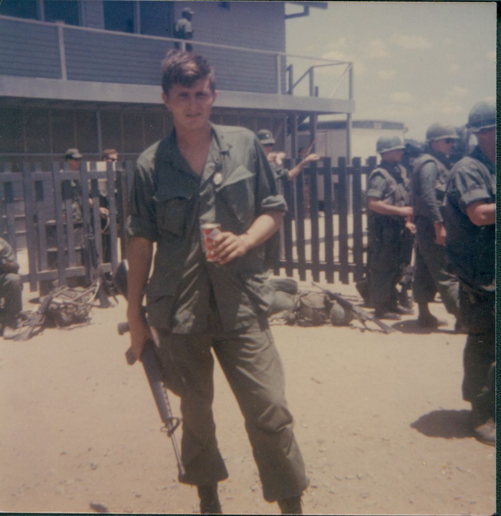 Well here I am at Camp Radcliffe (it’s our base camp) near An Khe. It’s been raining almost all the time that I’ve been here. The rain stops as fast as it starts but after a hot day it feels good to have that cold water on you.