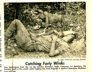 We patrolled all day long. One day you’d be on ambush, one day on guard and one day on listening post. It kept rotating, seven days a week, never a day’s rest. Patrol all day long, then when you’re on ambush your squad or platoon was up all night then all the next day to patrol. Days without rest.