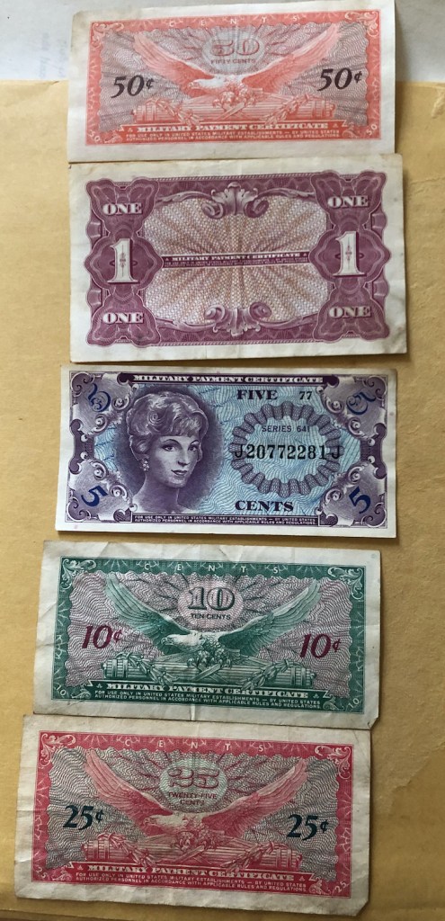 Well it’s getting close to the day when I’ll be 20 it’s kind of hard to believe it don’t seem possible. I got a few cards from Thompson, Justin, Sterling, Bert & Ruth, and Bertrand. Justin sent me a dollar which is not good over here because we only use MPC (military payment certificate) but I was able to get rid of it by selling it to a guy that was going on R&R.